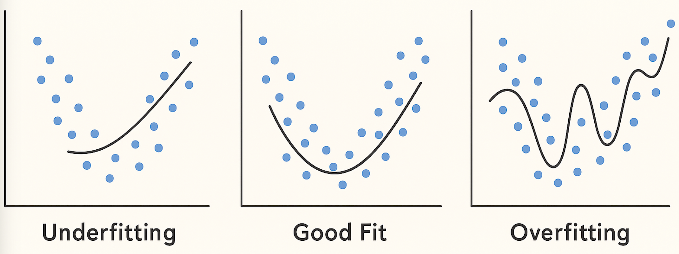 딥러닝 모델을 학습시킬 때, 우리는 모델이 학습 데이터로부터 패턴을 잘 익혀서 새로운, 본 적 없는 데이터에 대해서도 정확한 예측을 하기를 원합니다. 하지만 때때로 모델이 너무 적게 배우거나, 반대로 너무 많이 배울 때가 있습니다. 이것은 각각 언더피팅(underfitting) 또는 오버피팅(overfitting)으로 이어집니다. 이제 예시, 시각 자료, 간단한 수학과 함께 이 개념들을 쉽게 풀어보겠습니다..